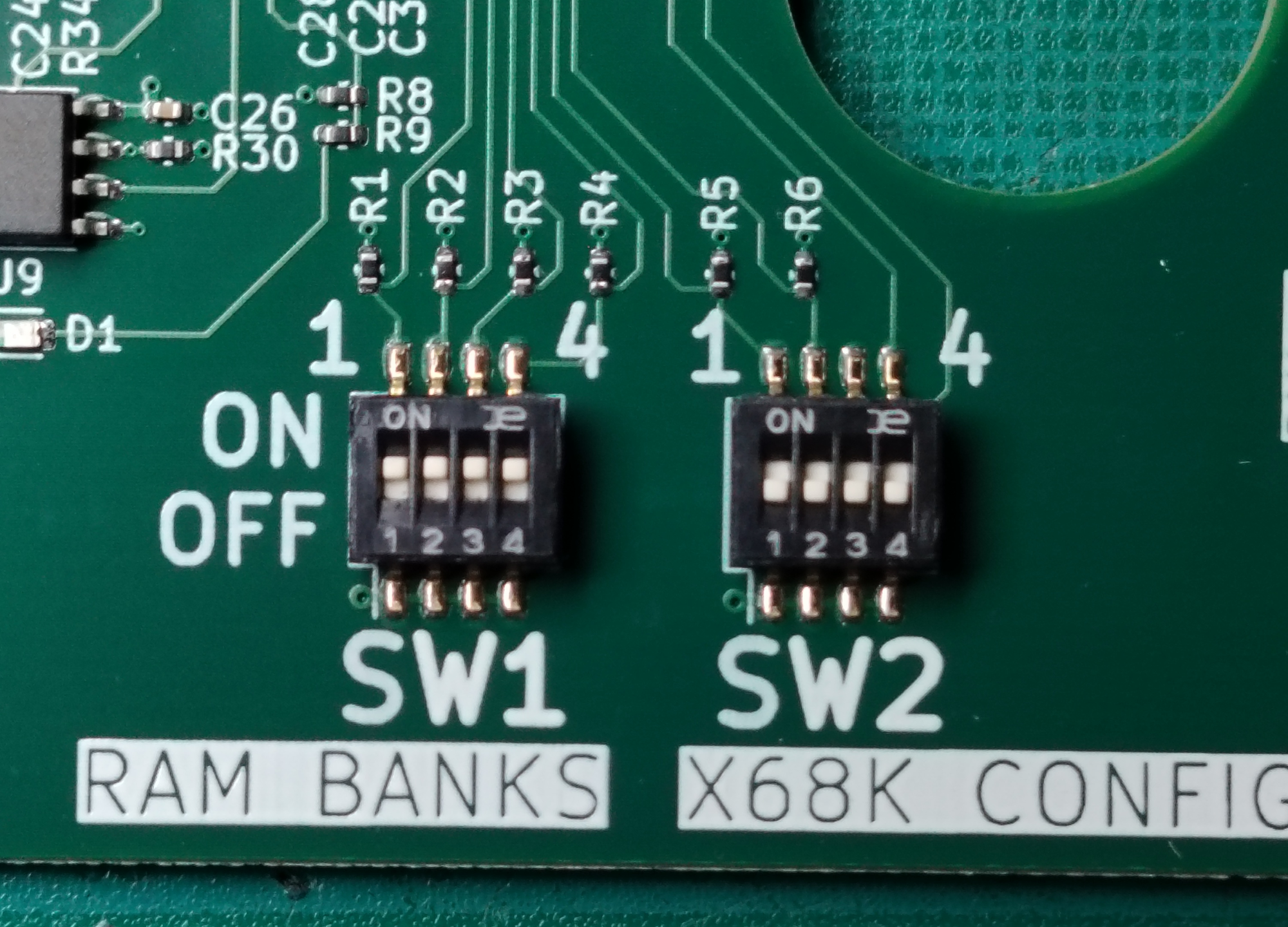 The RAM is divided into 4 banks of 2MB and each switch in SW1 can individually turn the banks on or off. By default, the boards are shipped with all switches set to ON which will enable the full 8MB of RAM.